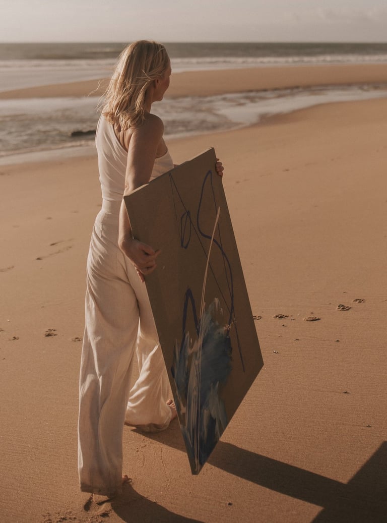 Her passion for creating art emerged from her life by the sea. Having spent the past five years in Portugal, she has been deeply shaped by the oceans energy, landscape, light and rhythms, which continue to influence her artistic expression.