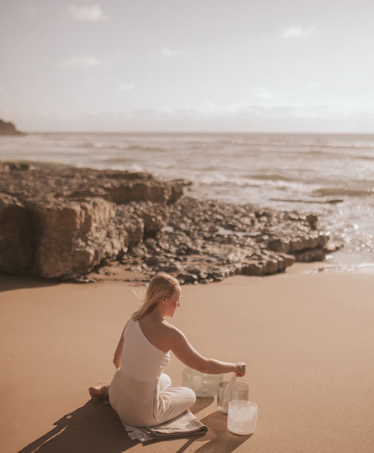 A sound bath is an immersive experience that uses specific instruments to guide your body into deep meditation and relaxation. In my sound baths, I work with crystal alchemy bowls infused with precious metals, crystals, gemstones, and earth elements. These bowls emit healing frequencies that bring your mind, body, and soul into balance and harmony, helping you feel calm and deeply connected to yourself.